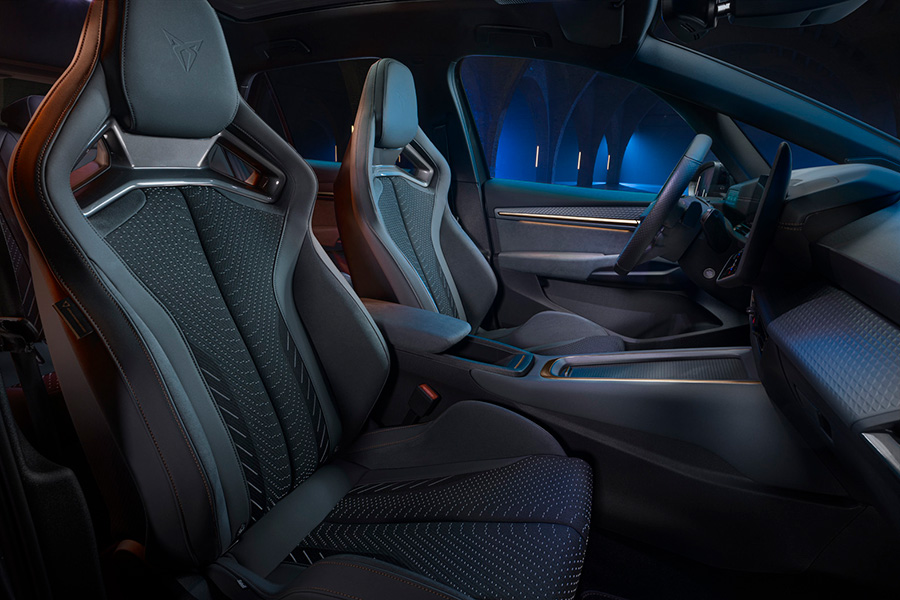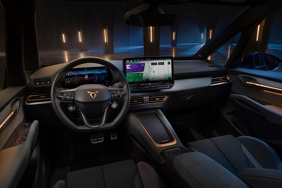 Рестайлинг Cupra Born затронут в том числе и интерьер. На передней панели располагается виртуальный щиток приборов диагональю 10,25 дюйма (у дореформенной версии – 5,3 дюйма), а также модели оставили тачскрин информационно-развлекательной системы на 12,9 дюйма, но ему положена новая операционная система. Одним из главных изменений в салоне стало наличие физических кнопок на трёхспицевом рулевом колесе с усечённым ободом.