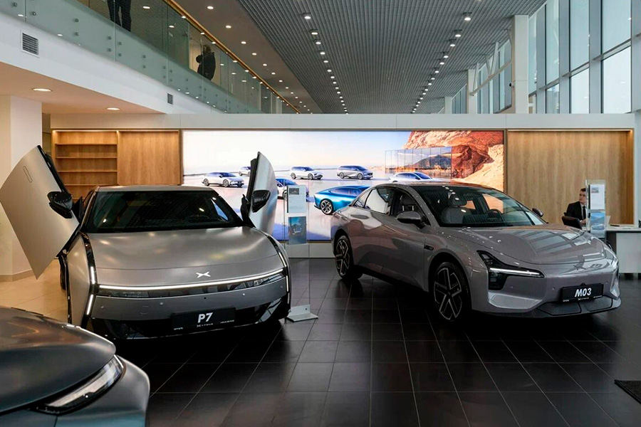 В линейку вошли четыре электромобиля. Самой доступной моделью станет седан Xpeng Mona M03. Разгон до 100 км/ч занимает 7,4 секунды, мощность электромотора — 160 кВт (218 л.с.). Батарея ёмкостью 62,2 кВт·ч обеспечивает запас хода до 620 км (по циклу CLTC). Интерфейс полностью русифицирован.